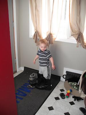 Big News!!! Oliver went pee in the potty for the first time! Yay!!! We made a big deal of cheering for him, but he was just too interested in watching Curious George to really care too much.